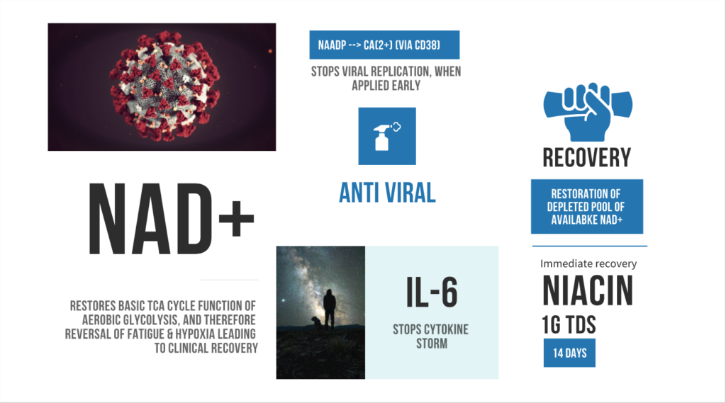 - Niacin 1g TDS – QDS ( Upon testing positive for C19: asymptomatic/mildly symptomatic )
